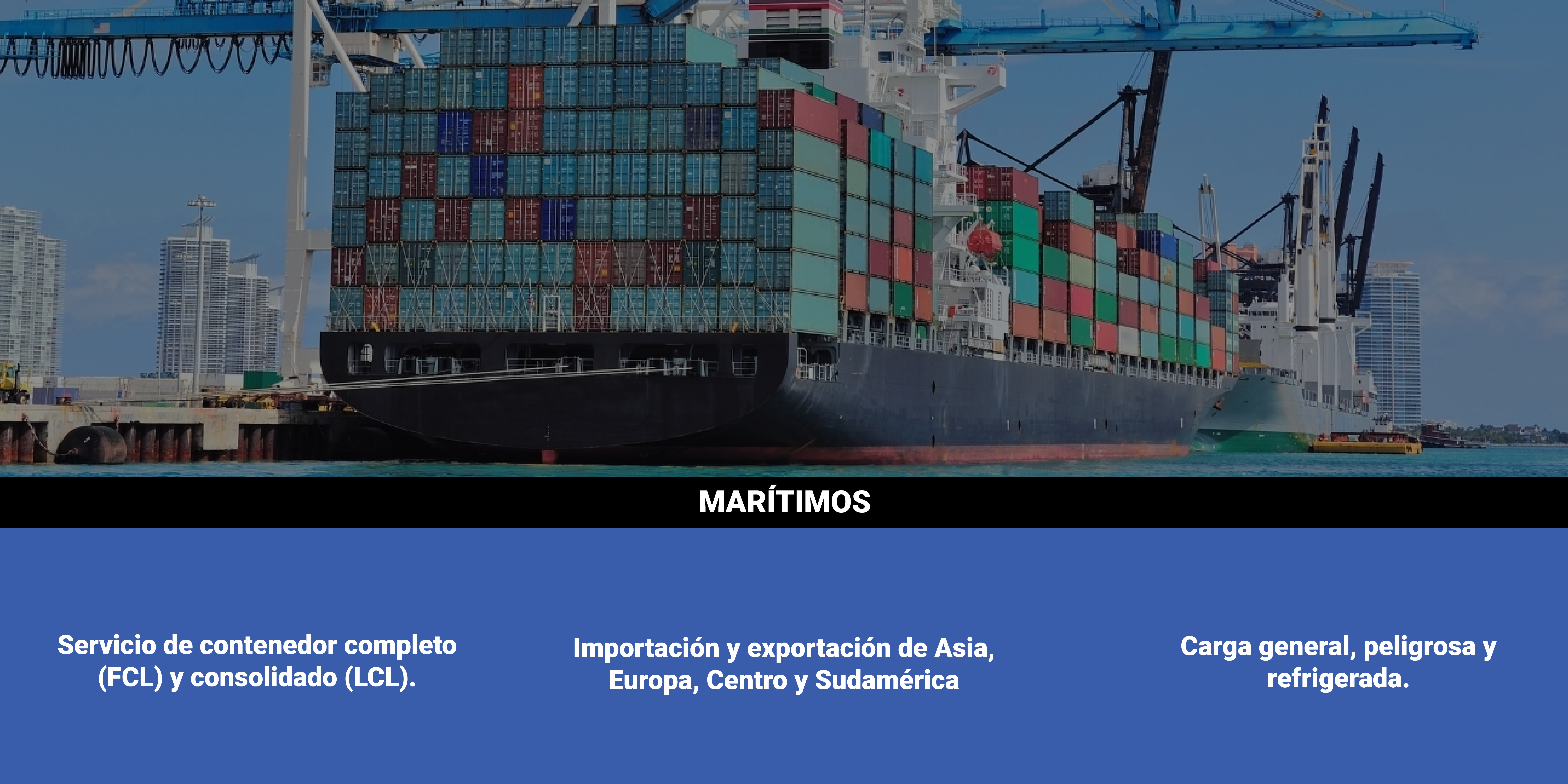 - Carga general, peligrosa y refrigerada.